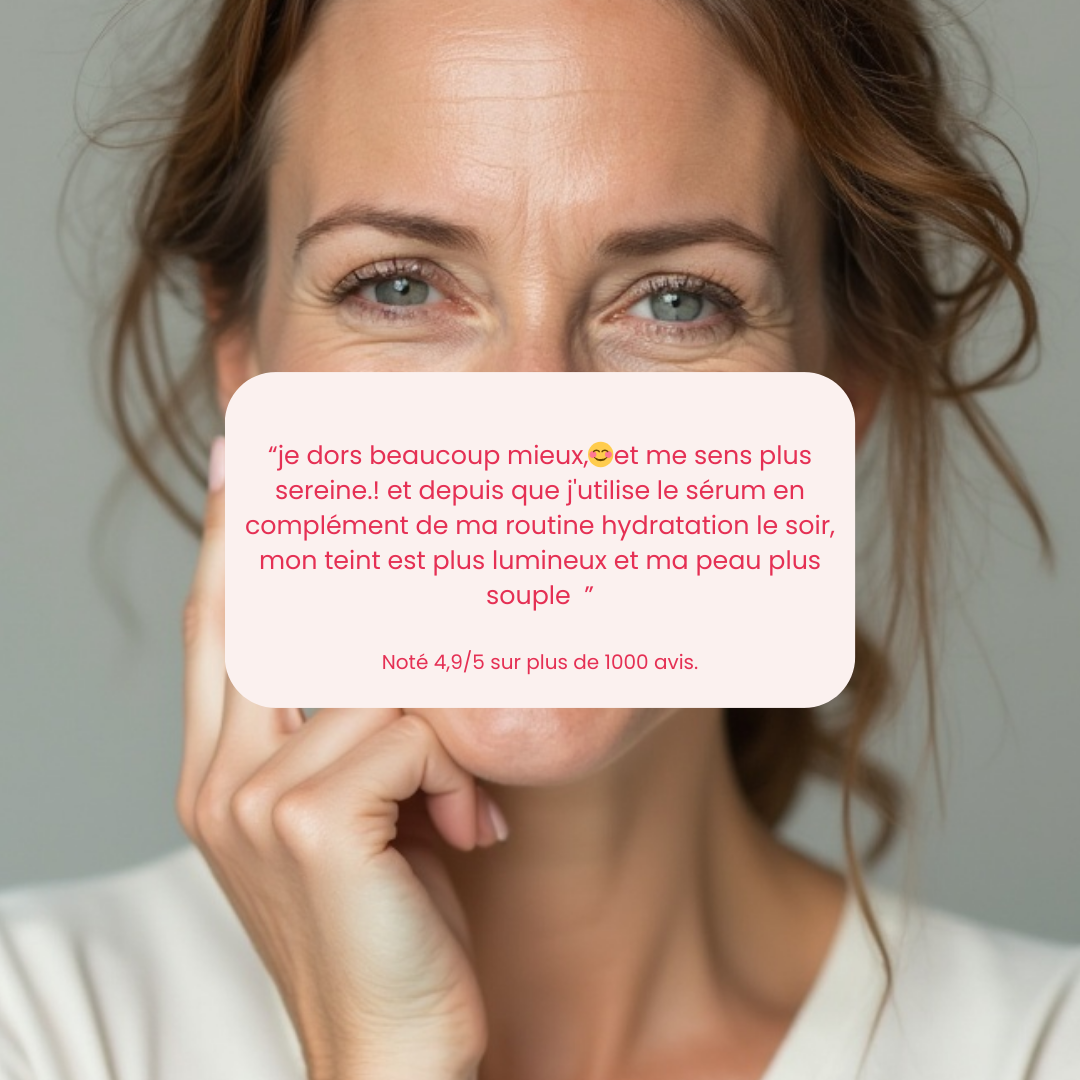 Avec Nuit Soyeuse : hydratation intense de la peau, atténuation des rougeurs, amélioration de la qualité du sommeil, diminution du stress et du niveau de cortisol